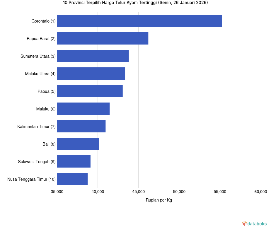Harga Telur Ayam di Gorontalo Rp.55.250 per Kg (Senin, 26 Januari 2026) -