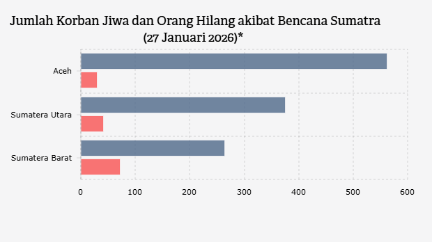Dua Bulan Banjir Sumatra, 1.204 Orang Meninggal Dunia dan 140 Hilang (Selasa, 27 Januari 2026) -
