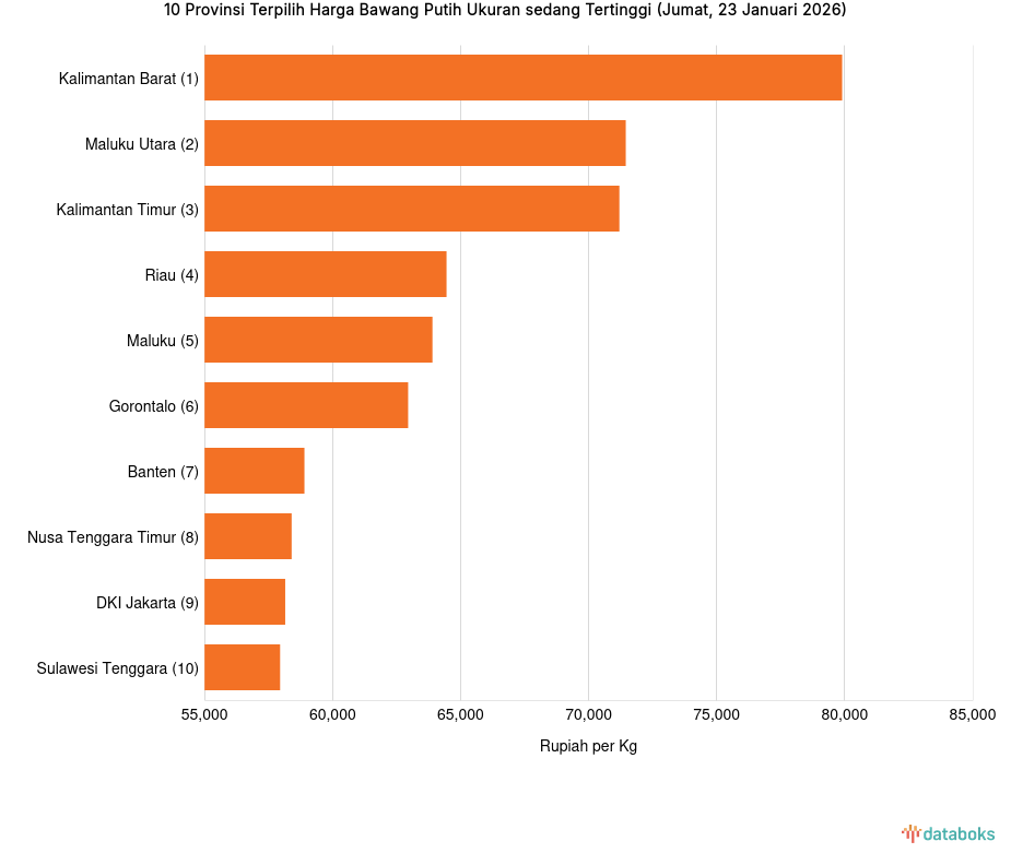 Harga Bawang Putih Ukuran sedang di Kalimantan Barat Paling Mahal di Indonesia (Jumat, 23 Januari 2026)