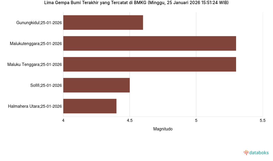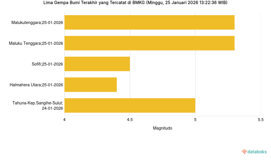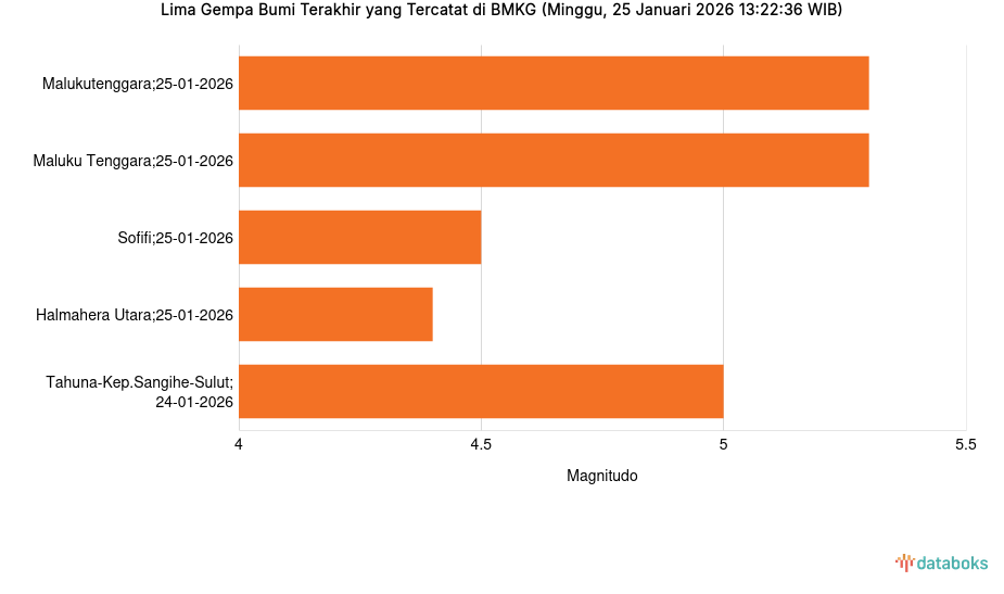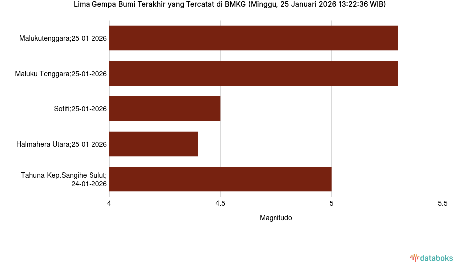 Lima Gempa Bumi Terakhir yang Tercatat di BMKG (Minggu, 25 Januari 2026 13:22:36 WIB) -