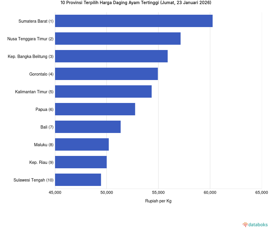 Harga Daging Ayam di Sumatera Barat Rp.60.250 per Kg (Jumat, 23 Januari 2026) -