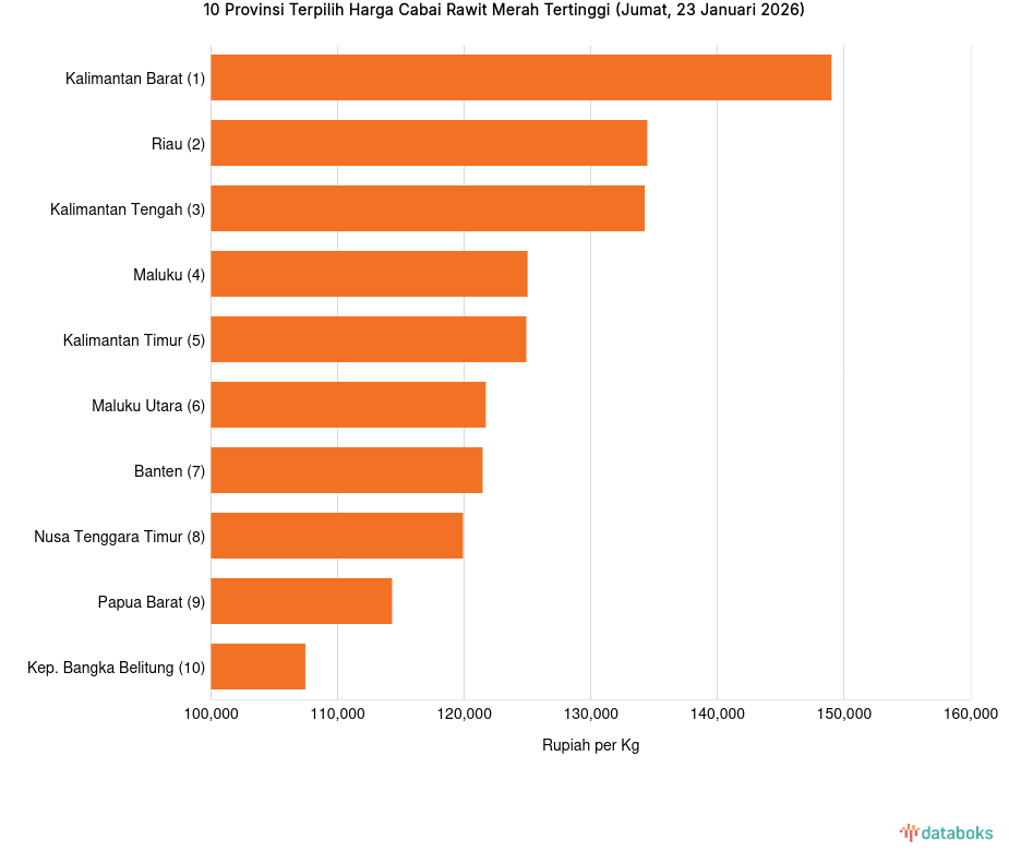 10 Provinsi dengan Harga Cabai Rawit Merah Paling Mahal (Jumat, 23 Januari 2026) -
