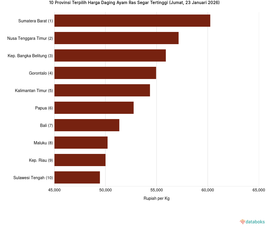 Harga Daging Ayam Ras Segar di Sumatera Barat Termahal Se-Indonesia (Jumat, 23 Januari 2026) -