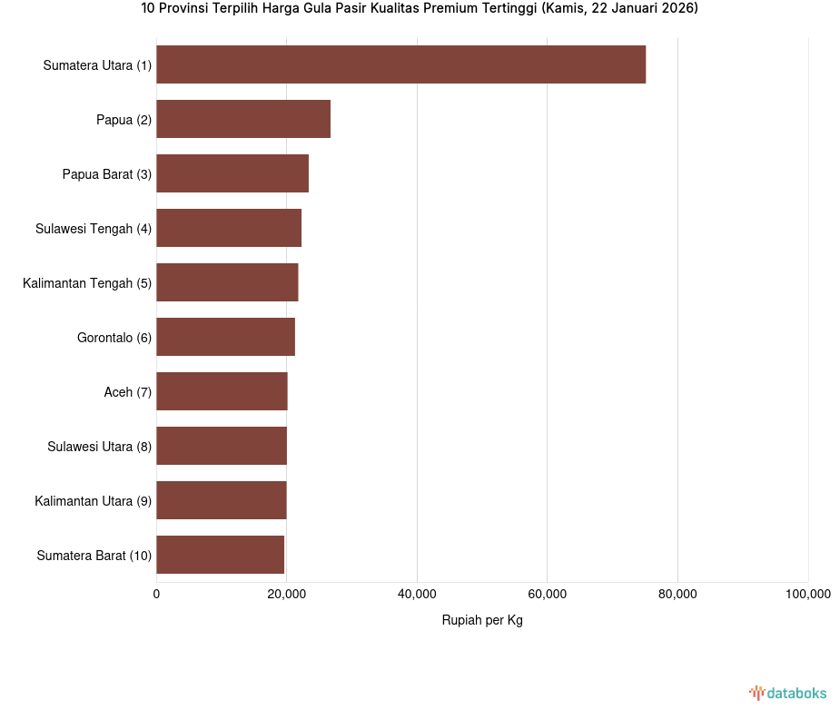 Harga Gula Pasir Kualitas Premium di Sumatera Utara Rp.75.100 per Kg (Kamis, 22 Januari 2026) -