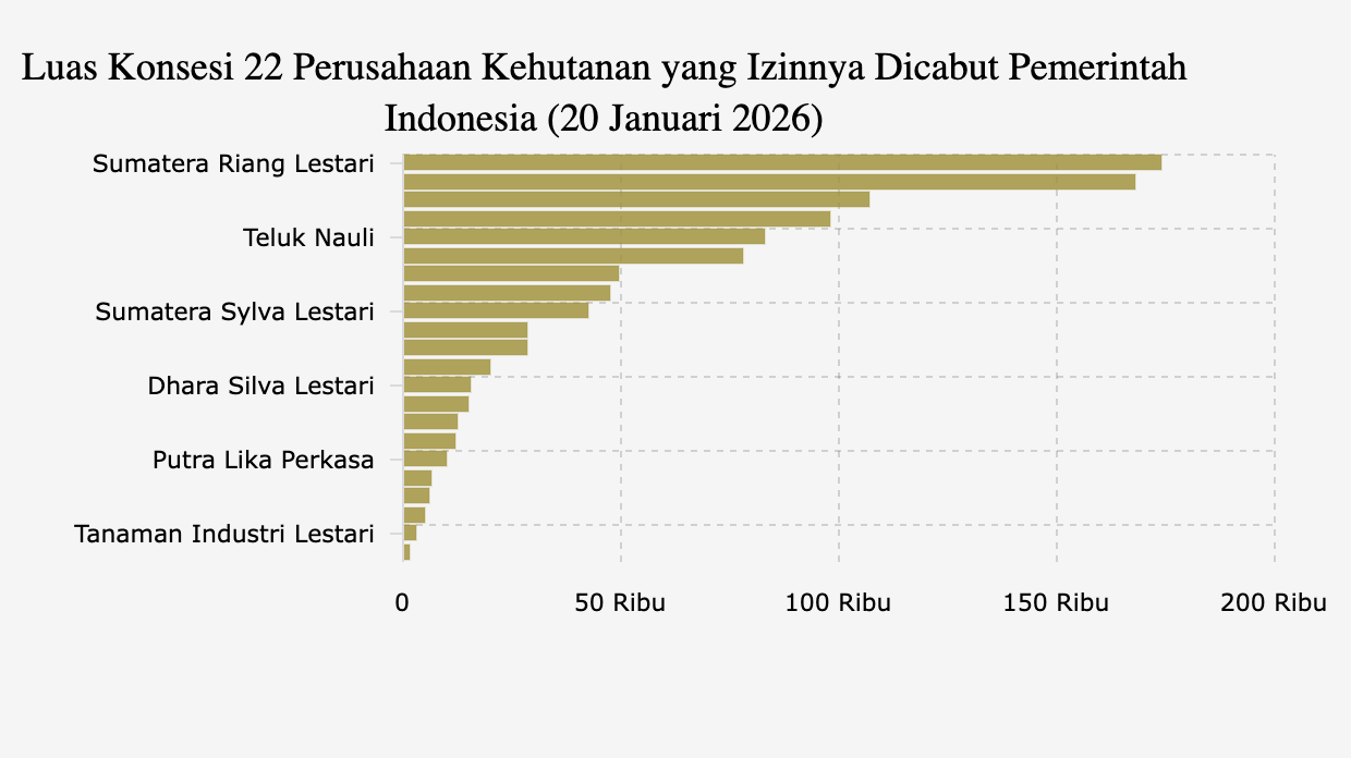 Luas Konsesi 22 Perusahaan Kehutanan yang Izinnya Dicabut Usai Bencana Sumatra -