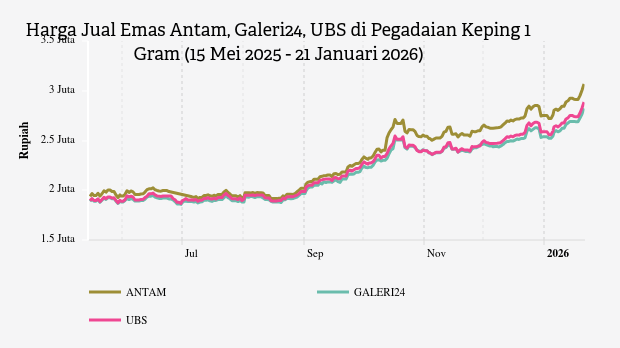 Harga Emas Hari Ini 21 Januari 2026 di Pegadaian, Galeri24 Naik Rp57.000 per Gram -