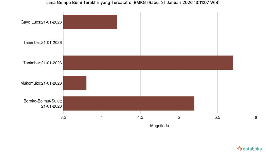 Gempa Hari Ini Rabu, 21 Januari 2026 Guncang Kabupaten Gayo Lues -