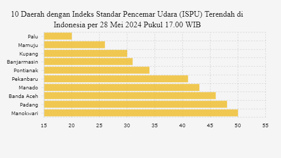 10 Daerah dengan Udara Sore Hari Paling Bersih di Indonesia (Selasa, 28 Mei 2024) -
