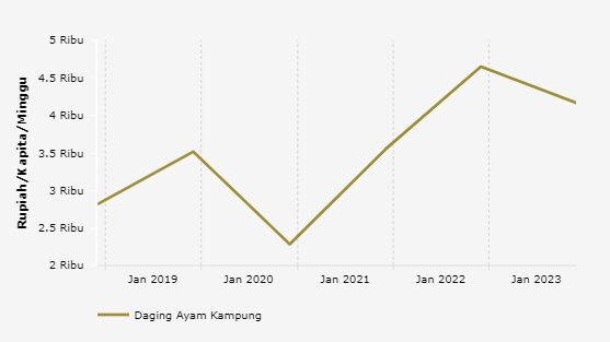 Per Minggu, Penduduk Kab. Sumba Timur Mengeluarkan Rp4.164,11 per Kapita per Minggu untuk Membeli Daging Ayam Kampung -