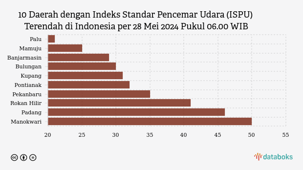 10 Daerah dengan Udara Pagi Hari Paling Bersih di Indonesia (Selasa, 28 Mei 2024) -
