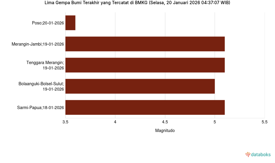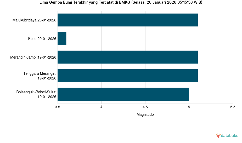 Lima Gempa Bumi Terakhir yang Tercatat di BMKG (Selasa, 20 Januari 2026 05:15:56 WIB) -