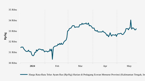 Harga Telur Ayam Ras Segar di Kalimantan Timur dalam Sepekan Naik 6,38% -