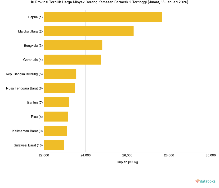 Harga Minyak Goreng Kemasan Bermerk 2 di Papua Rp.27.650 per Kg (Jumat, 16 Januari 2026) -