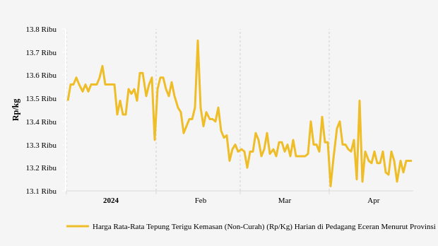 Harga Tepung Terigu Kemasan di Sulawesi Utara Sebulan Terakhir Turun 0,6% -