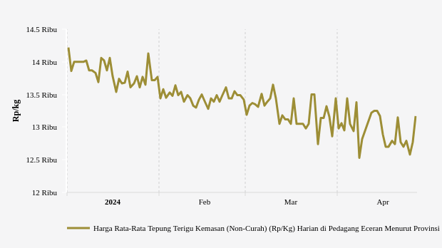 Harga Tepung Terigu Kemasan di Kepulauan Riau Seminggu Terakhir Naik Rp430 -