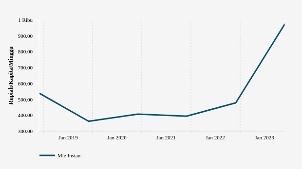 Pengeluaran Penduduk Kab. Mojokerto untuk Membeli Mie Instan Rp975.52 per Kapita per Minggu -