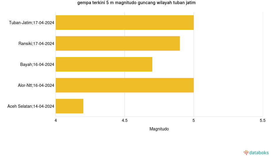 Gempa Terkini 5 M (Magnitudo) Guncang Wilayah Tuban Jatim -