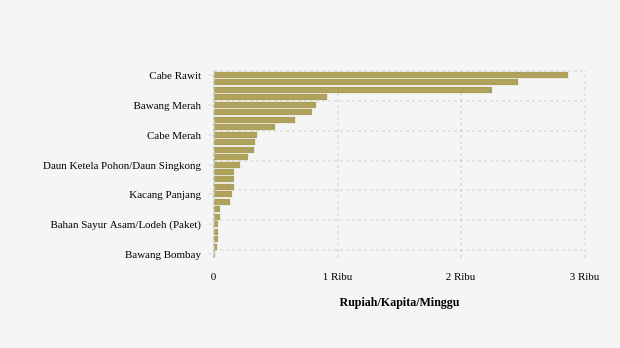 Per Minggu, Penduduk Kab. Kep. Siau Tagulandang Biaro Mengeluarkan Rp23,79 per Kapita per Minggu untuk Membeli Cabe Hijau -