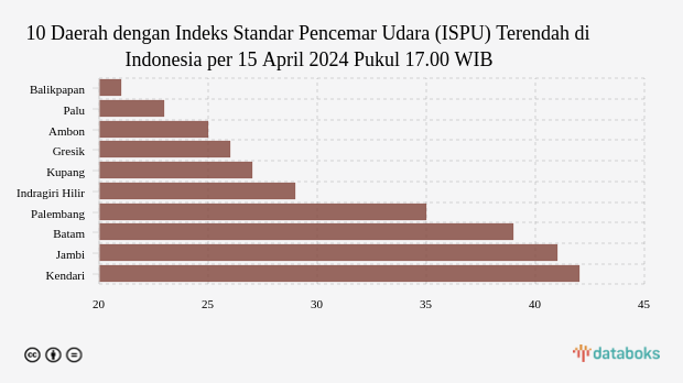 10 Daerah dengan Udara Sore Hari Paling Bersih di Indonesia (Senin, 15 April 2024) -