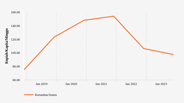 Per Minggu, Penduduk Kab. Pesisir Barat Mengeluarkan Rp97,46 per Kapita per Minggu untuk Membeli Ketumbar/Jinten -