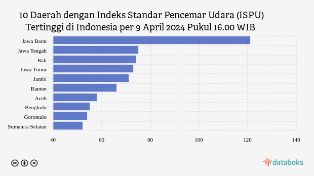 Polusi Udara Jawa Barat Sore Hari Terparah di Indonesia (Selasa, 9 April 2024) -