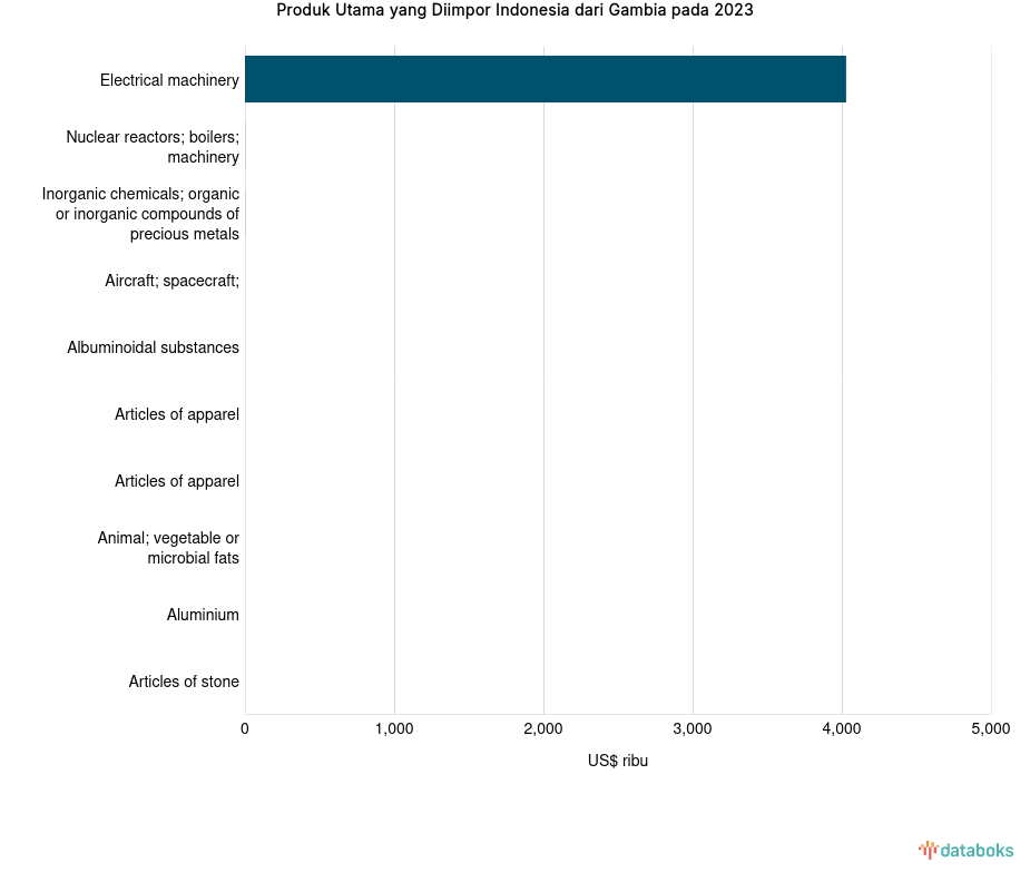 Impor Electrical Machinery Indonesia dari Gambia Naik Menjadi US$ 4,03 Juta