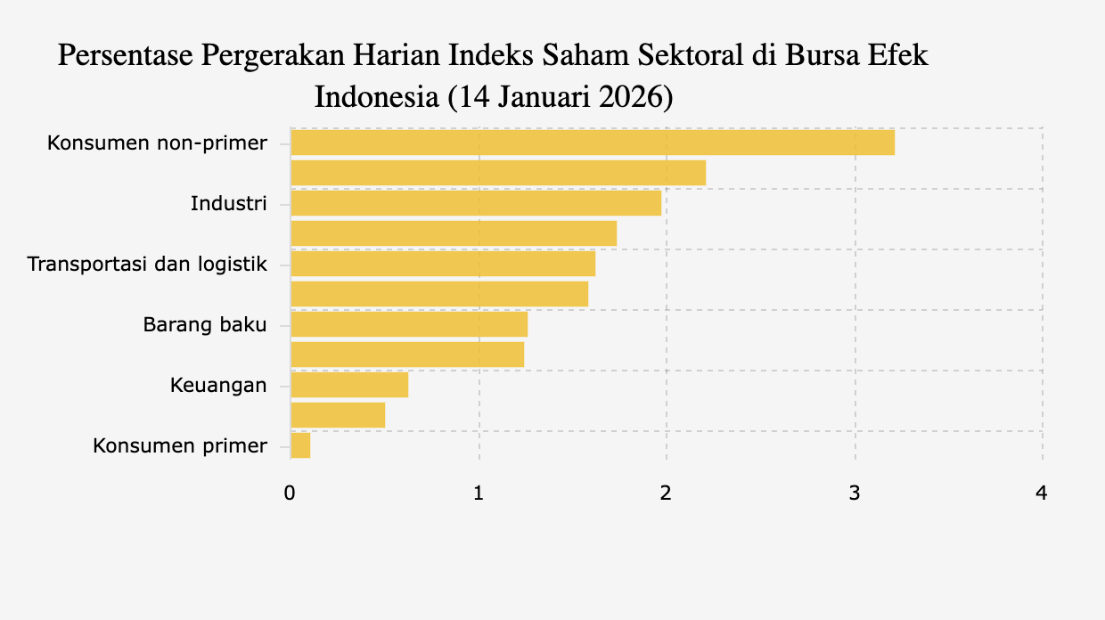 Semua Sektor Saham Naik, Barang Konsumen Non-Primer Tertinggi (Rabu, 14 Januari 2026)