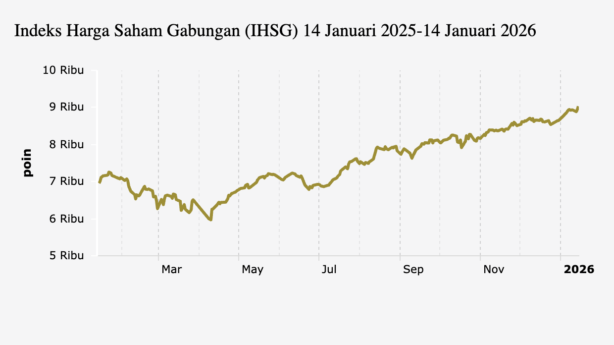 Rekor Tertinggi Baru, IHSG Ditutup di Atas 9.000 (Rabu, 14 Januari 2026) -