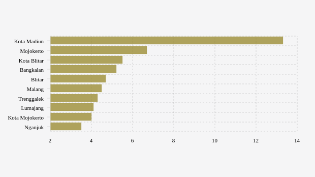 Daftar Kabupaten/Kota dengan BOR Tertinggi di Jawa Timur (Kamis, 23 Maret 2023) -