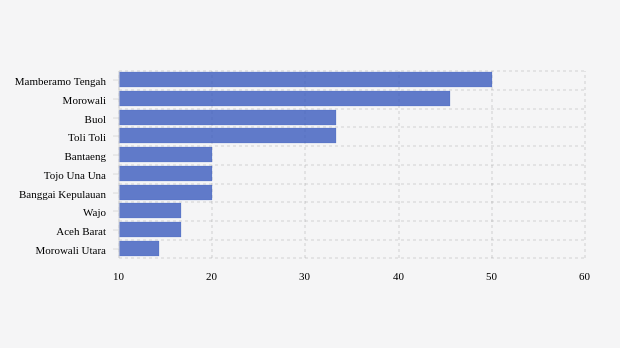 10 Kabupaten/Kota dengan BOR Rumah Sakit Covid-19 Tertinggi Nasional (Kamis, 23 Maret 2023) -