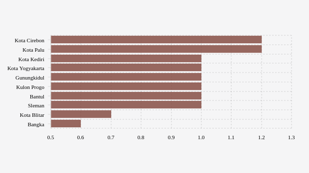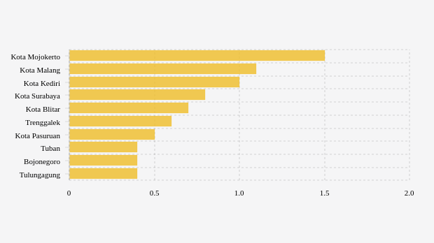 Daftar Kabupaten/Kota dengan Penggunaan Rawat Inap Rumah Sakit Mingguan Terbanyak di Jawa Timur (Rabu, 22 Maret 2023) -