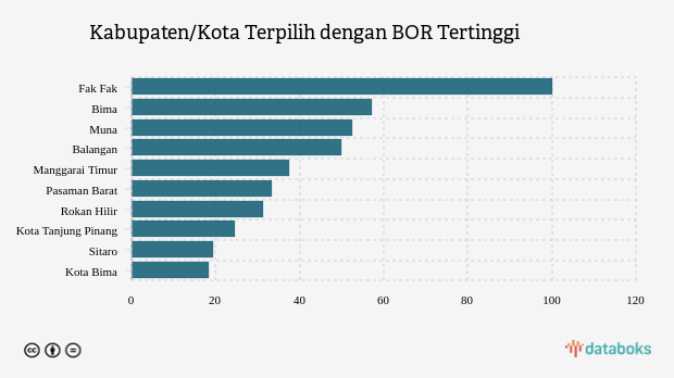 10 Kabupaten/Kota dengan BOR Rumah Sakit Covid-19 Tertinggi Nasional (Selasa, 21 Maret 2023) -