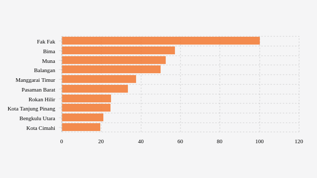 10 Kabupaten/Kota dengan BOR Rumah Sakit Covid-19 Tertinggi Nasional (Kamis, 16 Maret 2023) -