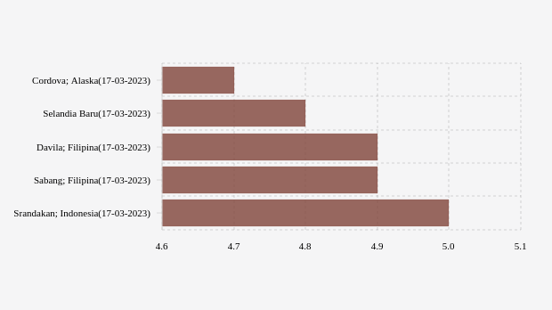 Gempa Bumi Berkekuatan 4.7 M Guncang 148 Km Selatan Timur Daya Dari Cordova,