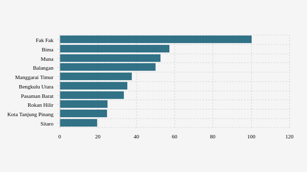 10 Kabupaten/Kota dengan Persentase Pemeriksaan Suspek per Minggu Tertinggi (Rabu, 15 Maret 2023) -