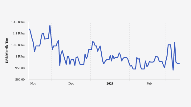 Harga CPO di Bursa Komoditas Rotterdam Naik ke Level US$ 960 per Metrik Ton (Kamis, 16 Maret 2023) -