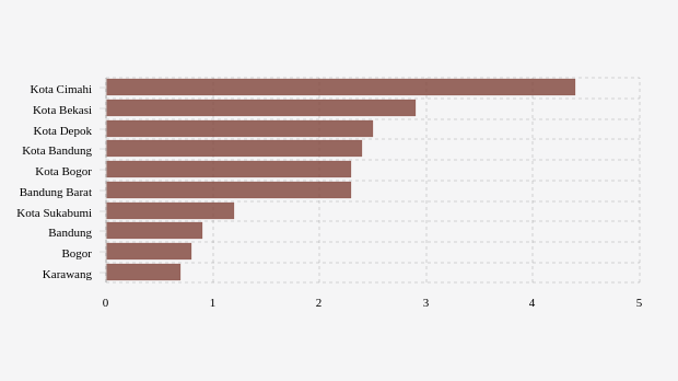 Daftar Kabupaten/Kota dengan Jumlah Konfirmasi Positif Covid-19 Mingguan Terbanyak di Jawa Barat (Minggu, 12 Maret 2023) -
