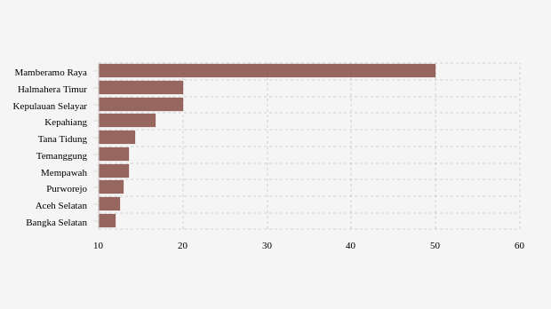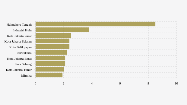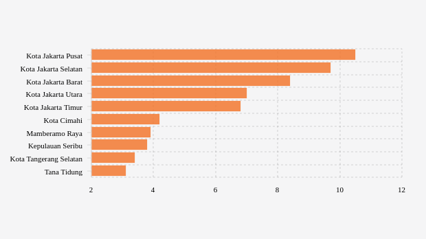 10 Kabupaten/Kota dengan BOR Rumah Sakit Covid-19 Tertinggi Nasional (Minggu, 12 Maret 2023) -
