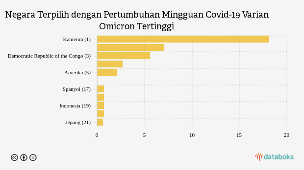 Pertumbuhan Omicron Mingguan, Tertinggi di Negara Kamerun (Selasa, 14 Maret 2023) -