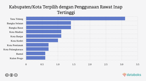 10 Kabupaten/Kota dengan Penggunaan Rawat Inap Tertinggi Nasional (Jumat, 10 Maret 2023) -