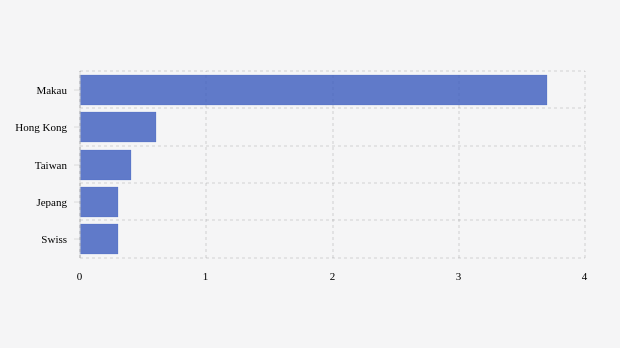 Pertumbuhan Total Kasus Covid-19 per 1 Juta Populasi di Makau Menjadi yang Tertinggi -
