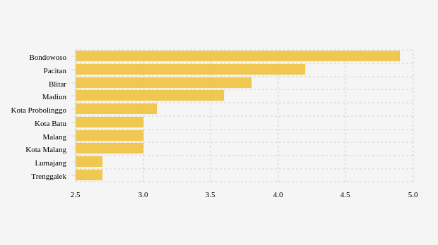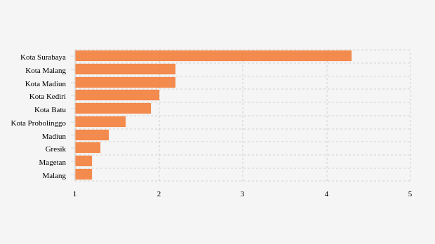 Daftar Kabupaten/Kota dengan Positivity Rate Aglomerasi Tujuh Hari Terakhir Tertinggi di Jawa Timur (Senin, 02 Januari 2023) -