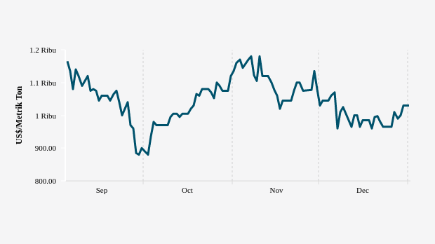Harga CPO Bertahan di Level US$ 997,5 per Metrik Ton -