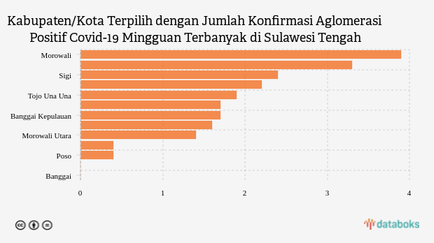 Jumlah Konfirmasi Aglomerasi Positif Covid-19 Mingguan di Morowali Menjadi yang Terbanyak di Sulawesi Tengah (Senin, 02 Januari 2023) -
