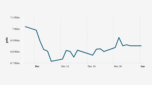 Awal Tahun Baru IHSG Menguat ke 6.850,98 (Senin, 2 Januari 2023) -