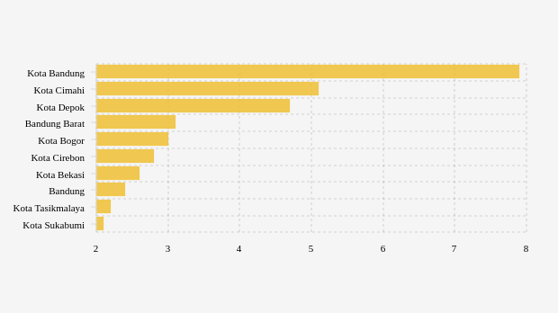 Daftar Kabupaten/Kota dengan Jumlah Konfirmasi Positif Covid-19 Mingguan Terbanyak di Jawa Barat (Sabtu, 31 Desember 2022) -