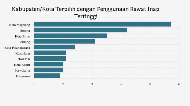 10 Kabupaten/Kota dengan Penggunaan Rawat Inap Tertinggi Nasional (Kamis, 29 Desember 2022) -