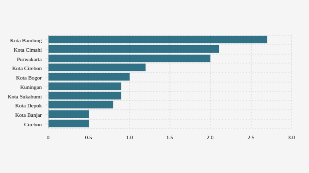 Daftar Kabupaten/Kota dengan Penggunaan Rawat Inap Rumah Sakit Mingguan Terbanyak di Jawa Barat (Kamis, 29 Desember 2022) -