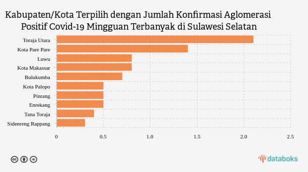 Jumlah Konfirmasi Aglomerasi Positif Covid-19 Mingguan di Toraja Utara Menjadi yang Terbanyak di Sulawesi Selatan (Rabu, 28 Desember 2022) -