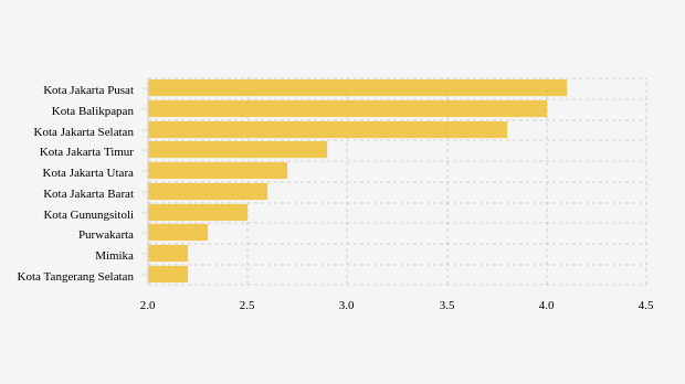10 Kabupaten/Kota dengan BOR Rumah Sakit Covid-19 Tertinggi Nasional (Rabu, 28 Desember 2022) -